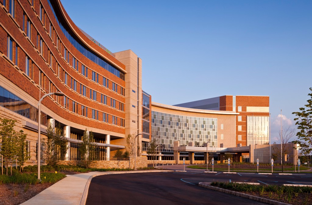 $352.8 million, new 227-bed replacement hospital spanning 596,492-SF is one component of a total healthcare development which also includes an outpatient imaging/cancer center contained within an attached 328,199-SF medical office building. The 36,000-SF, 42-bed emergency department, with separate ambulance and walk-up entrances, contains adult and pediatric units, radiology and resuscitation rooms. The project also includes a central utility plant supplying a 100,000 MBH heating load and 5,600-ton cooling load along with three emergency generators and a data center. Te project also included extensive development to the 75-acre site and is LEED® certified.